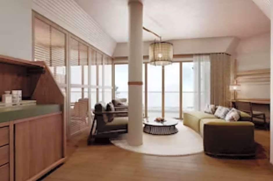 PREMIER SEA VIEW is 398 square feet and includes either 2 single beds 80-130 width or a king-size bed 150-183 width.